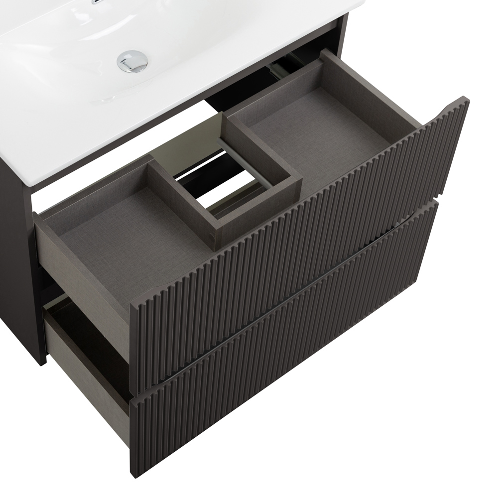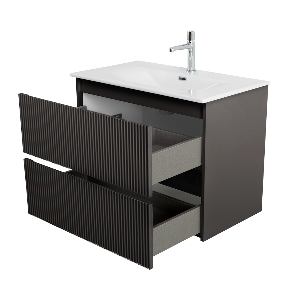 Тумба с раковиной подвесная BelBagno UNO-800-2C-SO-GSO Темно-Серый матовый, раковина белая BB-8099-80