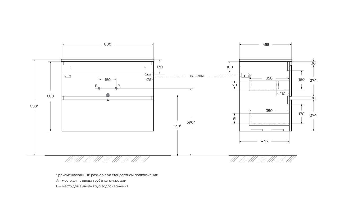 Тумба с раковиной подвесная BelBagno UNO-800-2C-SO-VO Еловый матовый, раковина белая BB-8099-80
