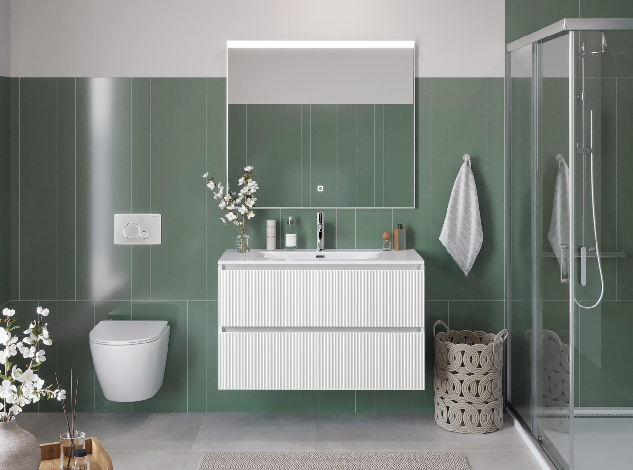 Тумба с раковиной подвесная BelBagno UNO-MINI-1000-2C-SO-BO Bianco Opaco, раковина белая BB-8099-3-100