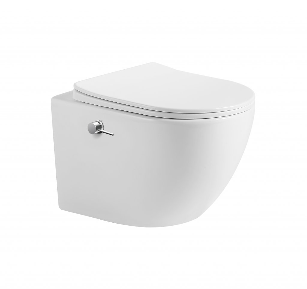 Унитаз подвесной безободковый с функцией биде.