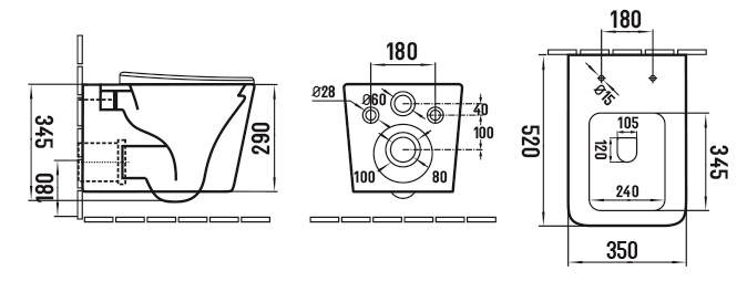 - Антивсплеск: форма воронки унитаза предотвращает образование брызг