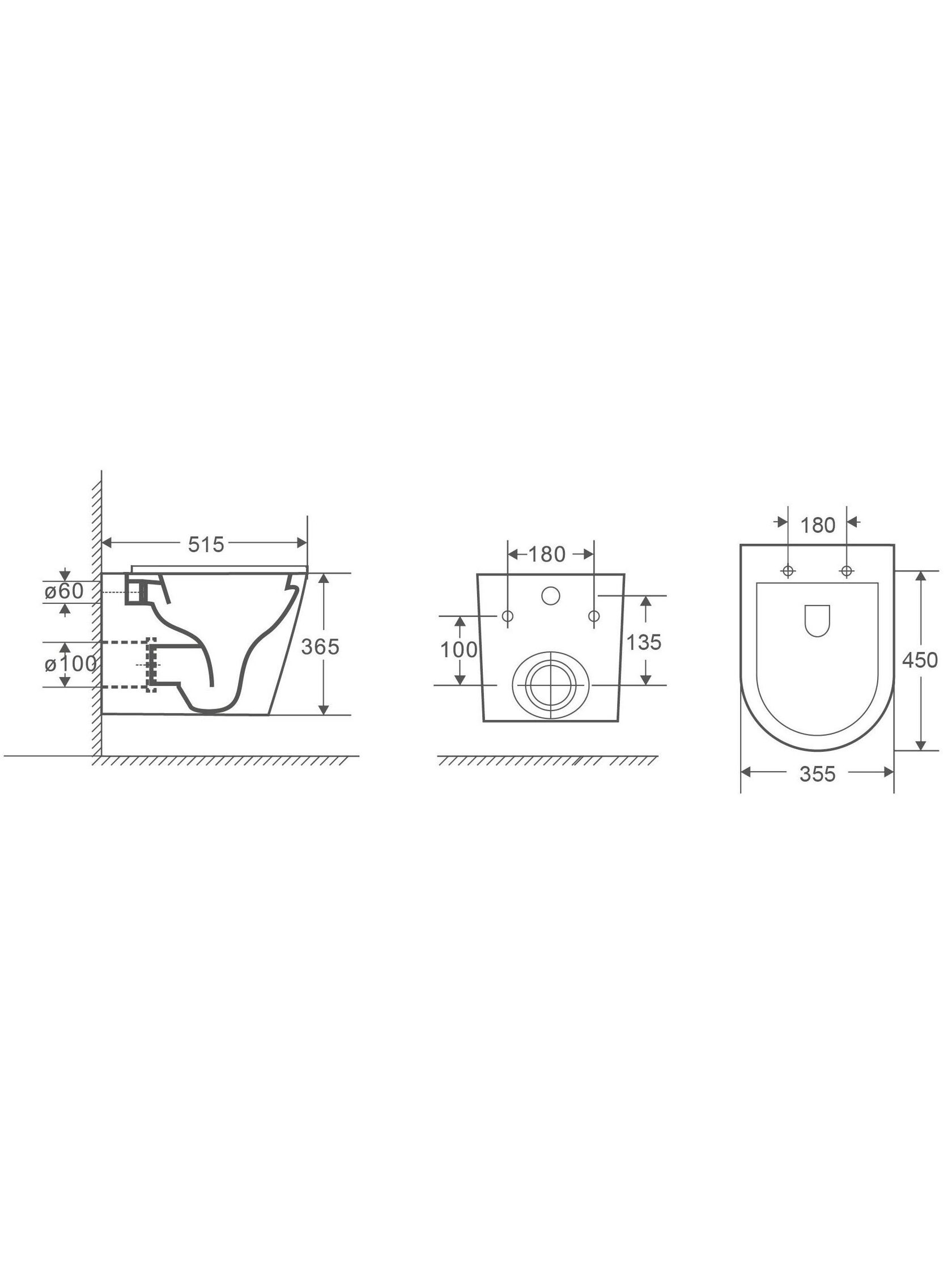 Тип: подвесной унитаз (инсталляция в комплект не входит).
