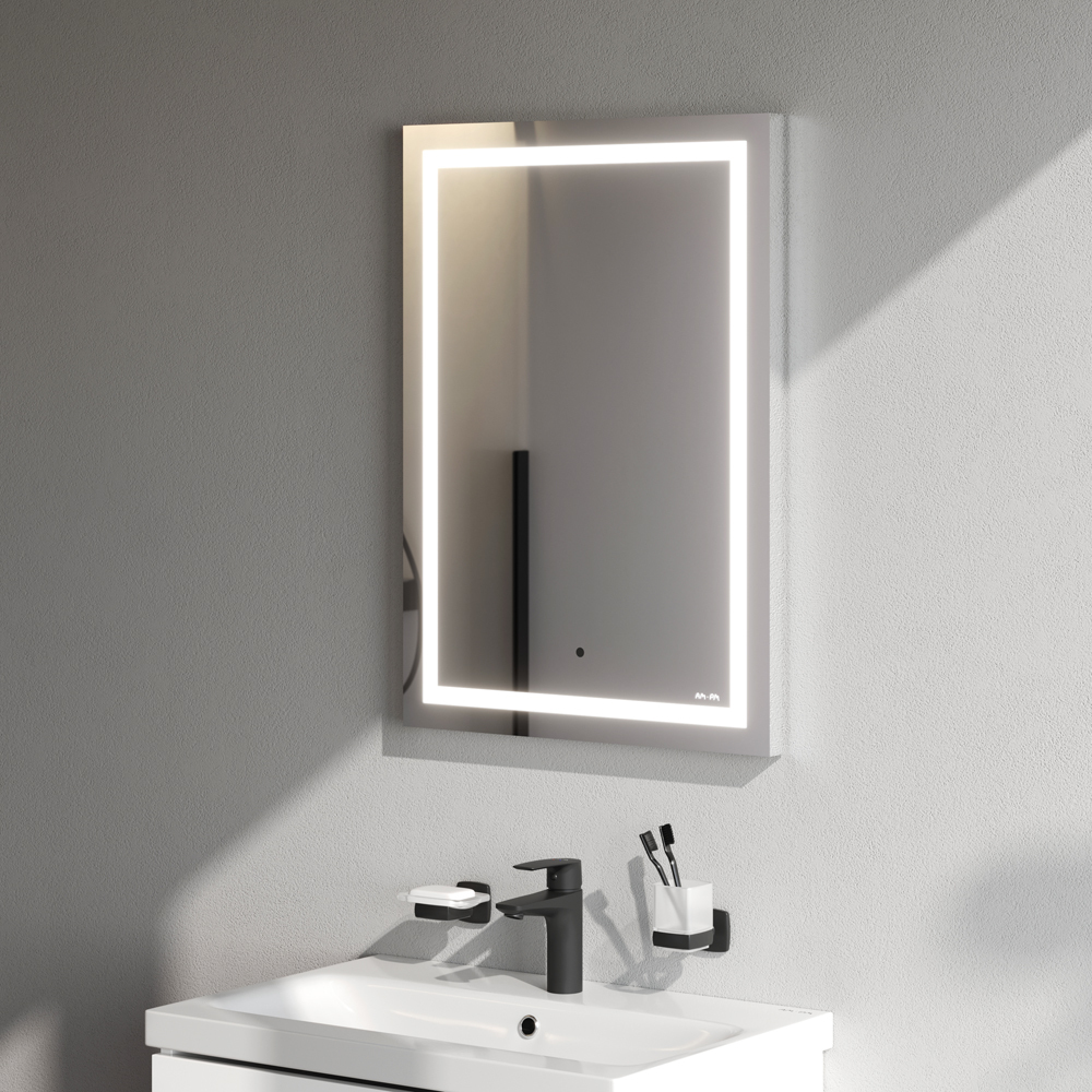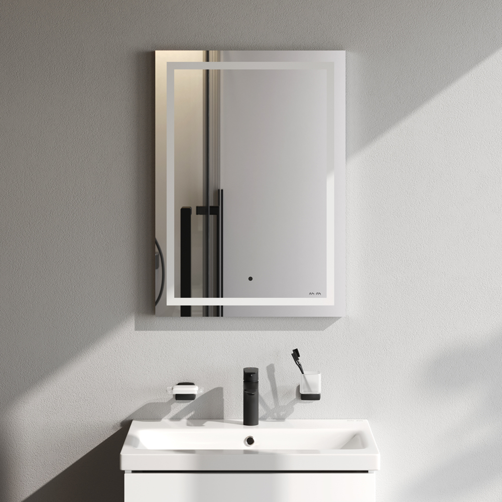 Обновление функционала и расширение размерной линейки зеркал AM.PM. Прямоугольное зеркало с яркой LED-подсветкой и бесконтактным сенсором в размере 50 см. Ультрамодный лаконичный дизайн зеркал Gem от собственной студии дизайна AM.PM Design подойдет к интерьеру любой ванной комнаты. Усиленная LED-подсветка по контуру зеркала обеспечивает отличное рассеянное освещение и отсутствие теней. Срок службы светодиодов составляет более 30 000 часов. Данная модель выпускается с бесконтактным сенсорным выключателем Touchless – никаких отпечатков на зеркальном полотне! Свет включается легким взмахом руки. Функция диммирования позволяет регулировать яркость жестом. Зеркальное полотно премиального качества производства Бельгии. Гарантия 3 года. ""