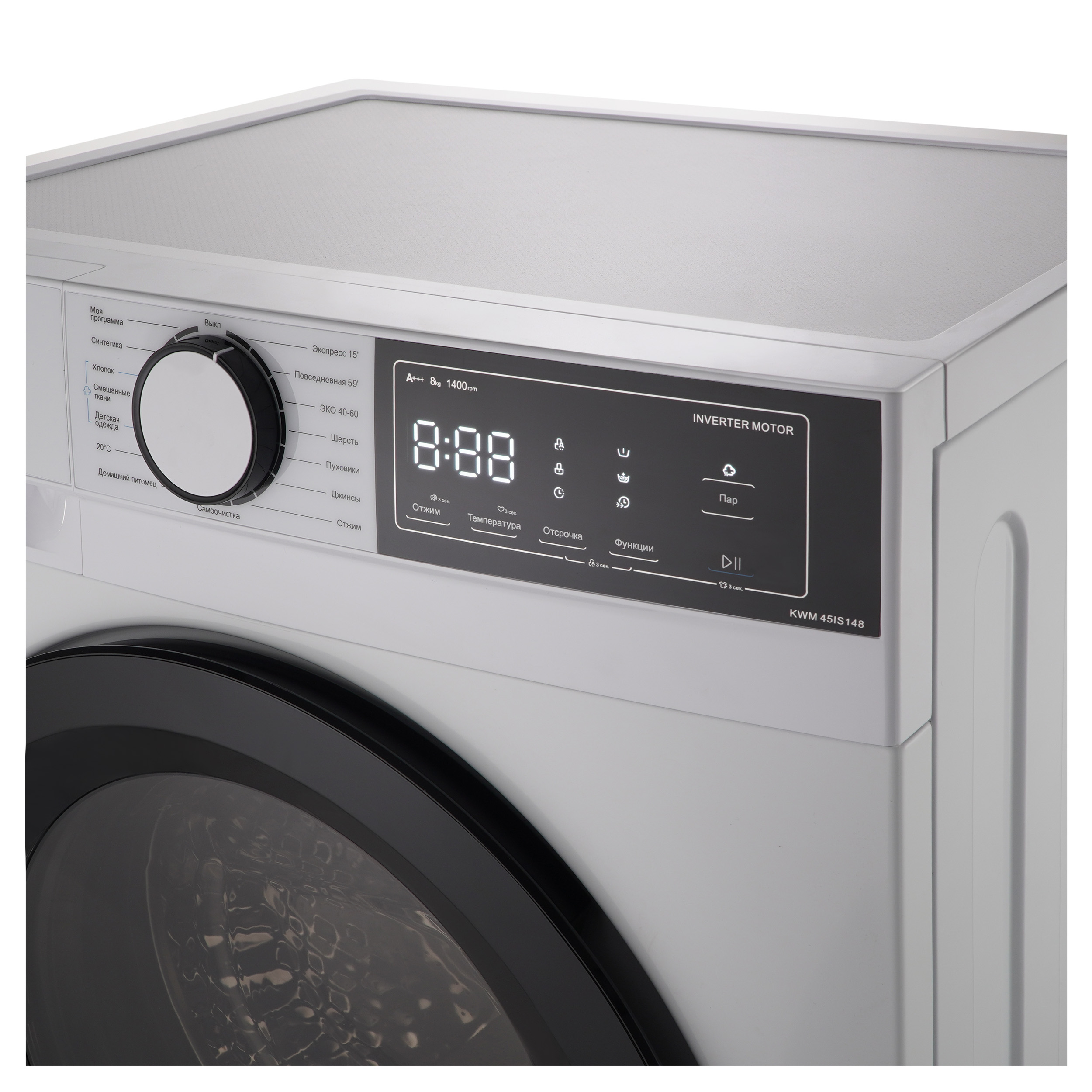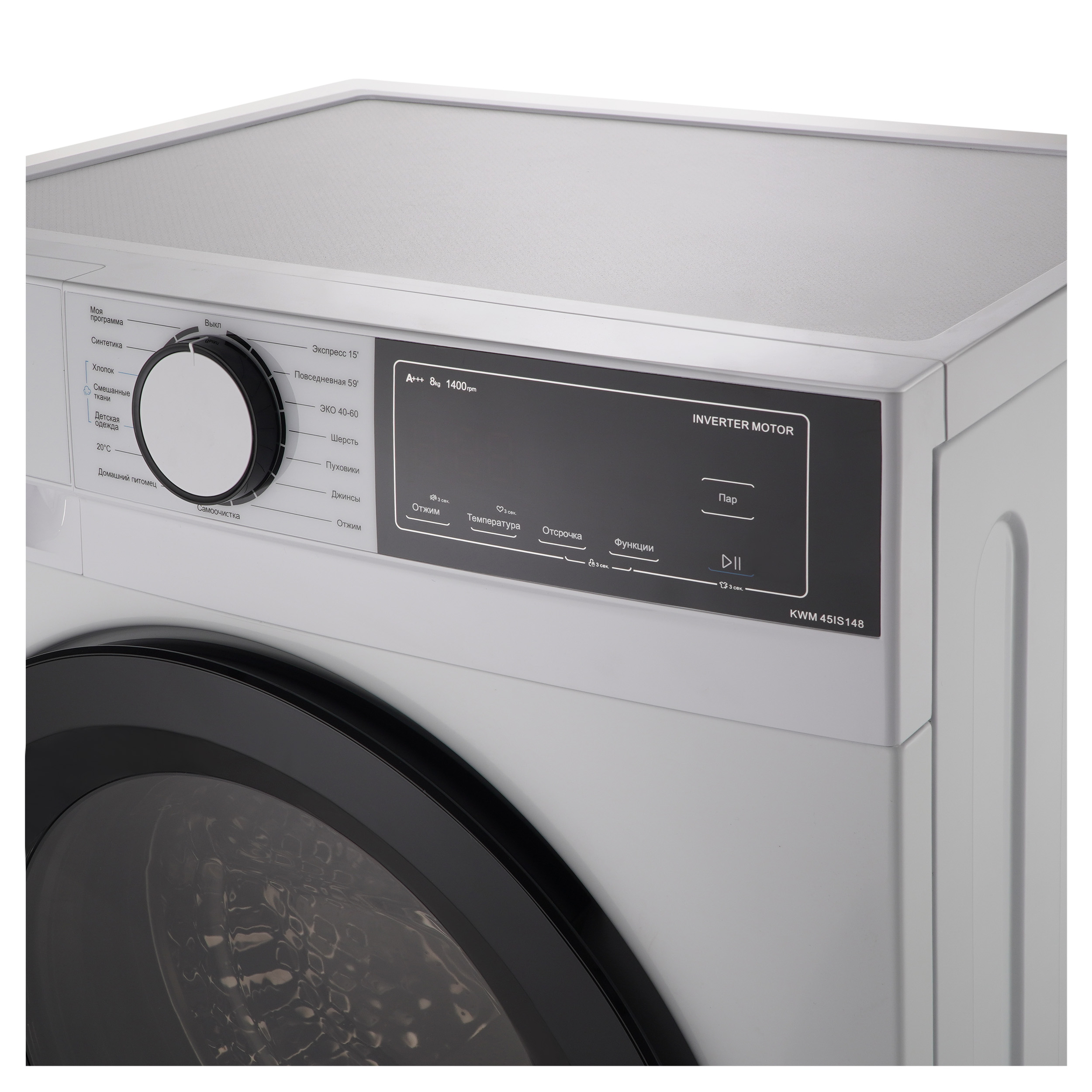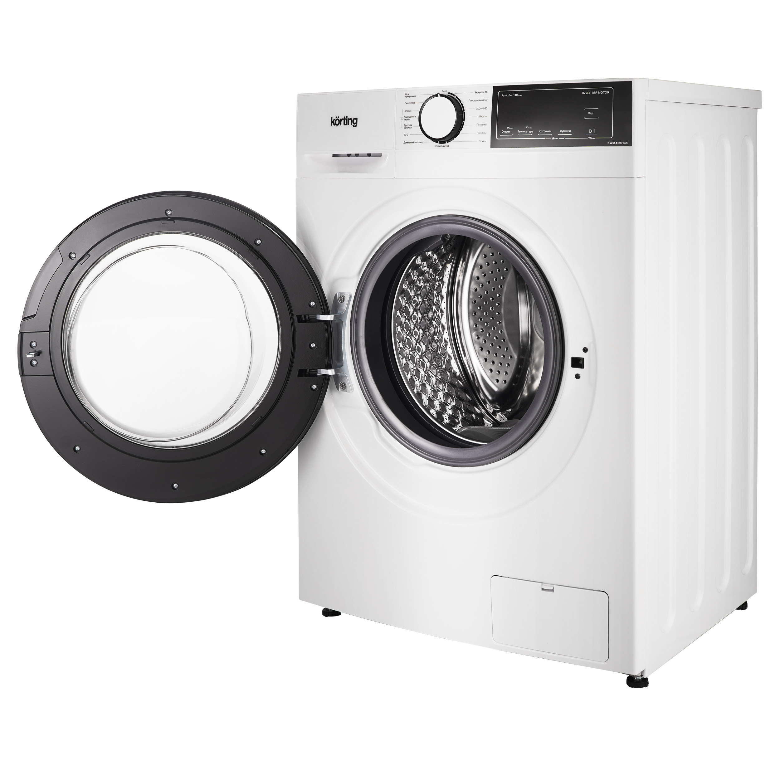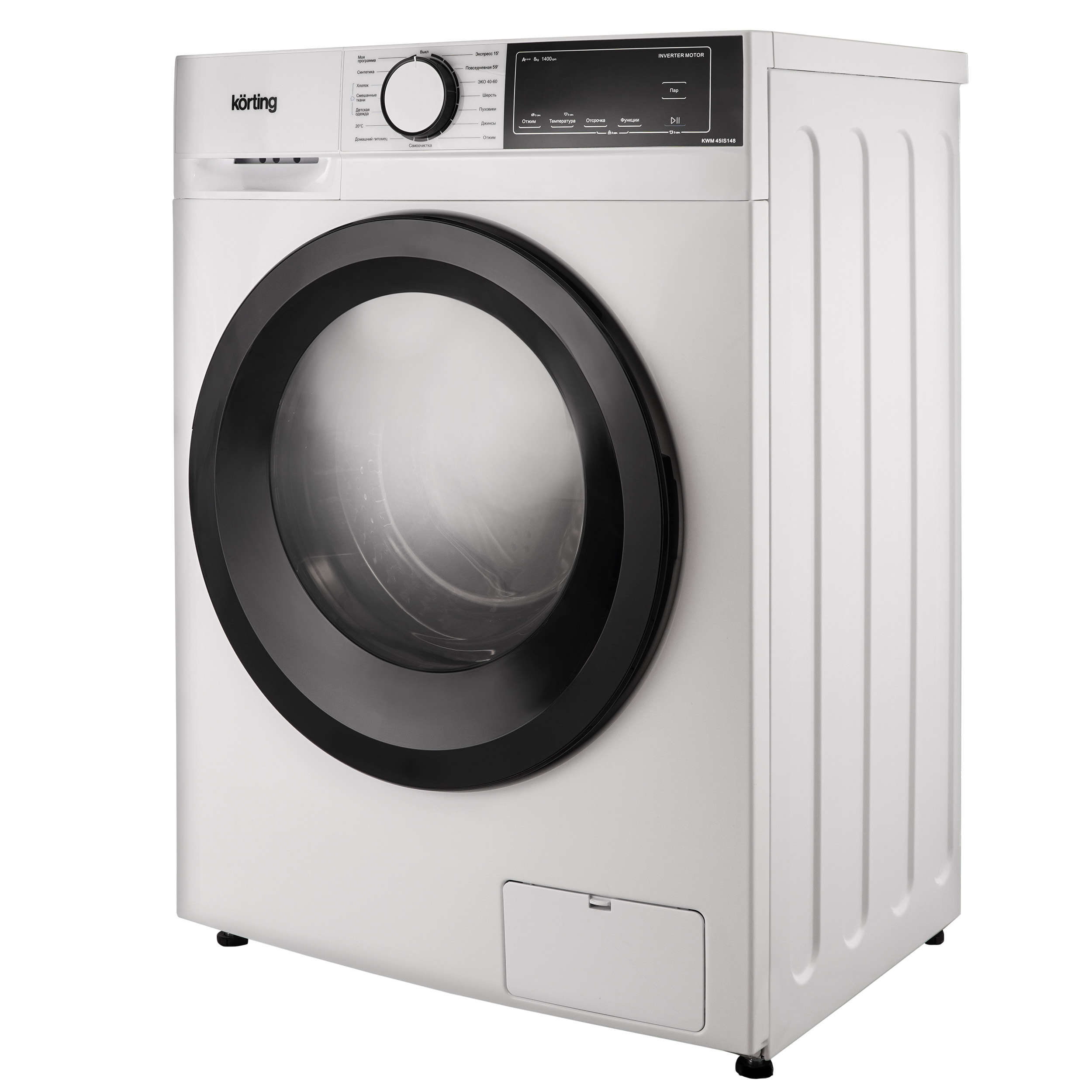 Узкая стиральная машина с паром KWM 45IS148 имеет глубину 45 см и позволяет загружать до 8 кг белья за один цикл стирки. Скорость отжима достигает 1400 оборотов в минуту. Машина оснащена LED-дисплеем и предлагает сенсорное управление. Модель включает 15 программ стирки, среди которых есть режим для детской одежды и для людей с чувствительной кожей. Специальная программа “Домашний питомец” эффективно удаляет шерсть, волосы и ворсинки, оставшиеся от домашних животных. Для стирки пуховиков и зимней утепленной одежды предусмотрена отдельная программа “Пуховики”. Функция пара обеспечивает более эффективное уничтожение бактерий и микробов, предотвращая появление неприятного запаха, а также делает белье более воздушным и облегчает последующую глажку. Чтобы избежать случайного изменения настроек во время работы, предусмотрена блокировка управления. Дверца также блокируется во время стирки, но ее можно разблокировать для дозагрузки белья; активация этой функции возможна при соблюдении определенных условий, связанных с температурой и уровнем воды в баке, выбранной программой и конкретным этапом стирки. Функция отложенного старта позволяет запланировать включение прибора на срок до 24 часов. Инверторный мотор, установленный в стиральной машине KWM 45IS148, обеспечивает надежность, снижает уровень шума и потребление электроэнергии.