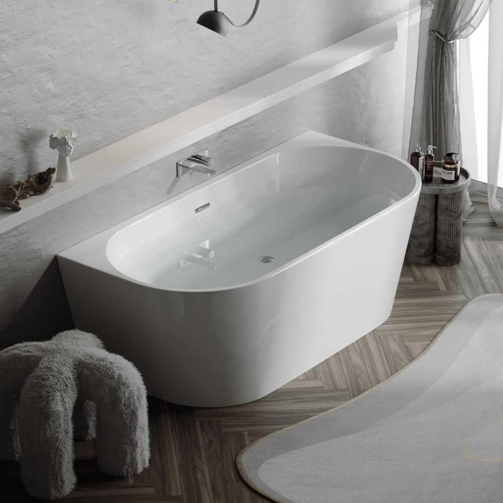Ванна First акриловая отдельностоящая пристенная; Цвет белый; Размер 1700*800*580мм; слив-перелив донный клапан "Click-Clack" в комплекте, хром