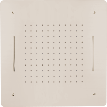 Потолочный душ Boheme артикул 428. Функции тропического дождя и водопада. Тонкий корпус выполнен из нержавеющей стали, а форсунки из сверх мягкого силикона для комфортной очистки и ухода. В наличии 11 цветов PVD покрытия.