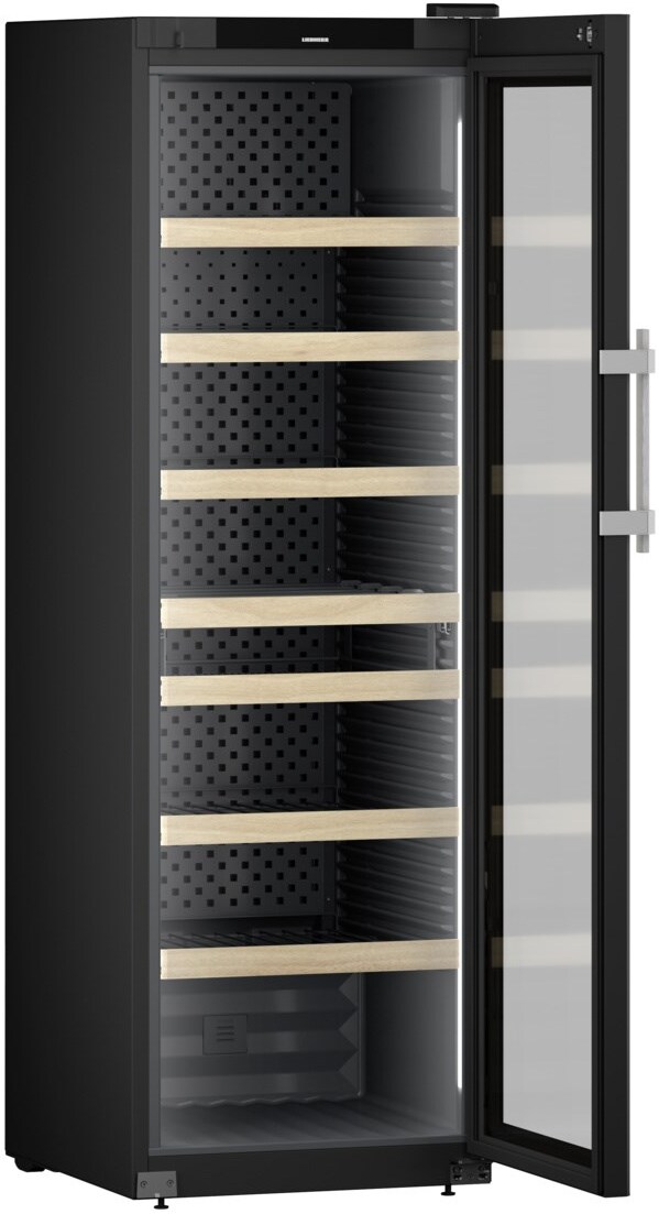 Винный шкаф Liebherr WFbLI 5241 - это высококачественное устройство предназначенное для хранения вина. Устройство обладает элегантным дизайном и великолепной функциональностью. Отделка крашеной стали придает шкафу современный и стильный внешний вид. Черный цвет корпуса и эргономичная ручка из нержавеющей стали делают его идеальным дополнением к любому интерьеру. Управление осуществляется при помощи сенсорных кнопок и ЖК-дисплея, что делает его использование простым и удобным. Винный шкаф оснащен одной дверью и одной температурной зоной, что обеспечивает равномерное распределение температуры от +5 °C до +20 °C внутри всего шкафа. Особенности этого шкафа включают защиту от детей, оптическую и акустическую сигнализацию неплотно закрытой двери и неисправности. Кроме того, есть возможность перенавешивания двери, что обеспечивает большую гибкость при установке.
