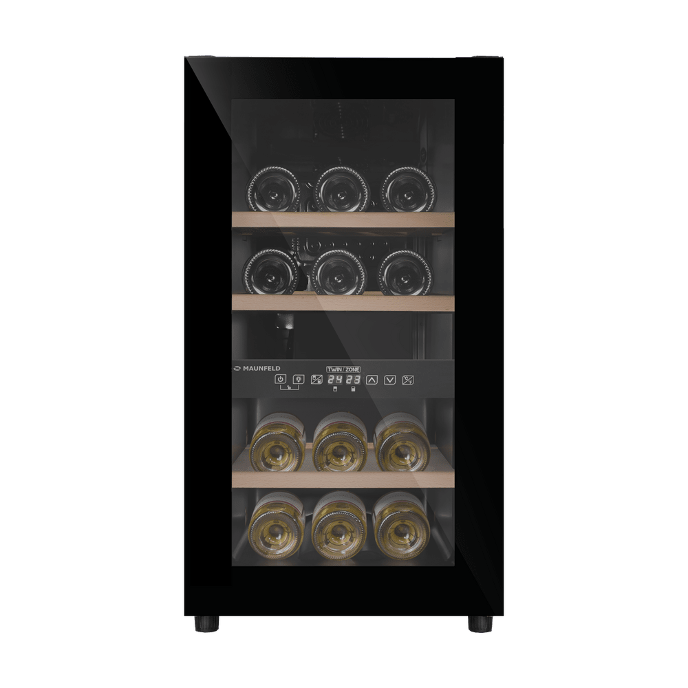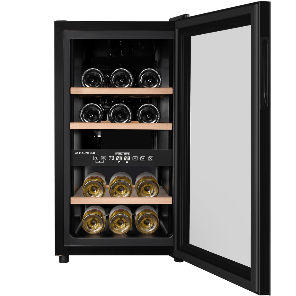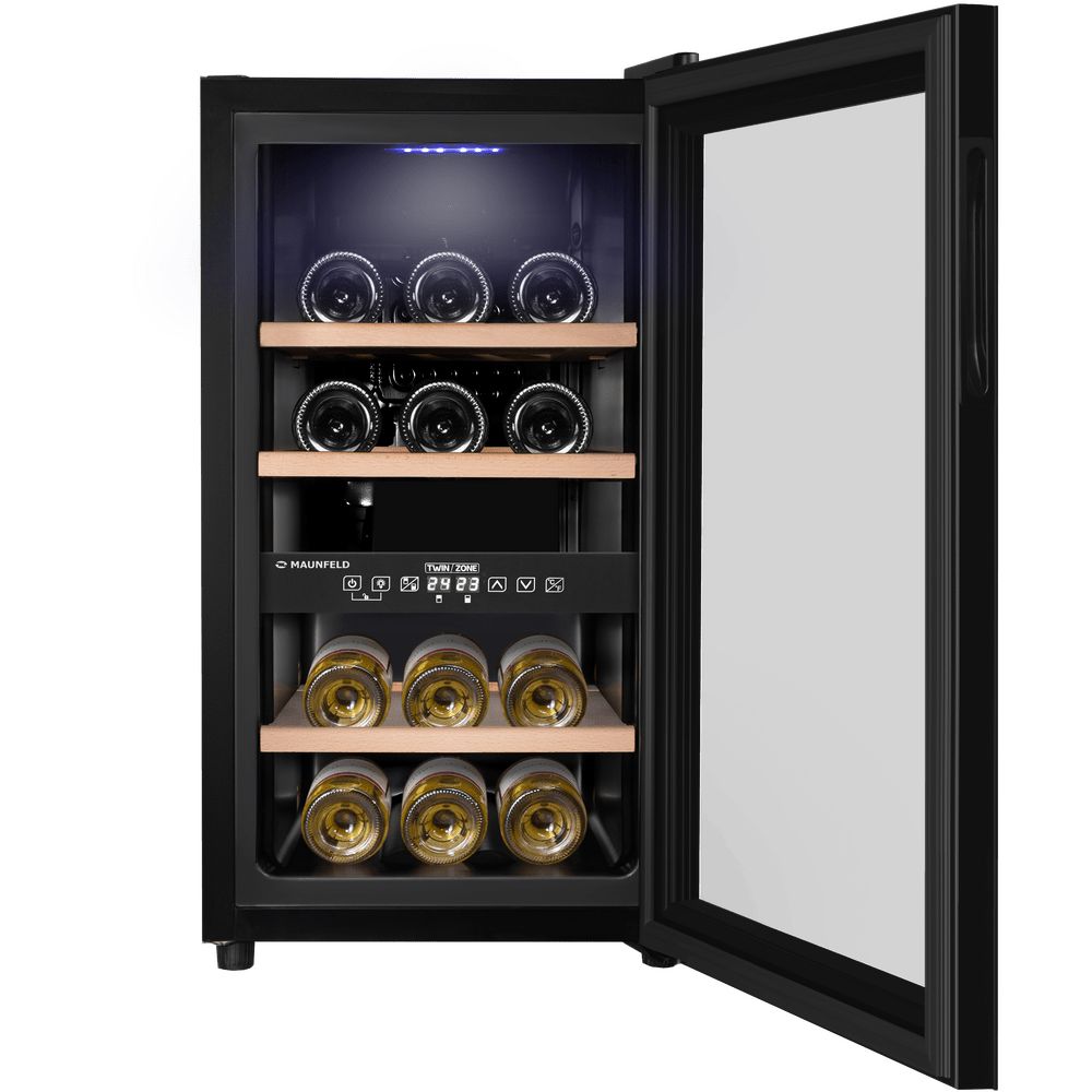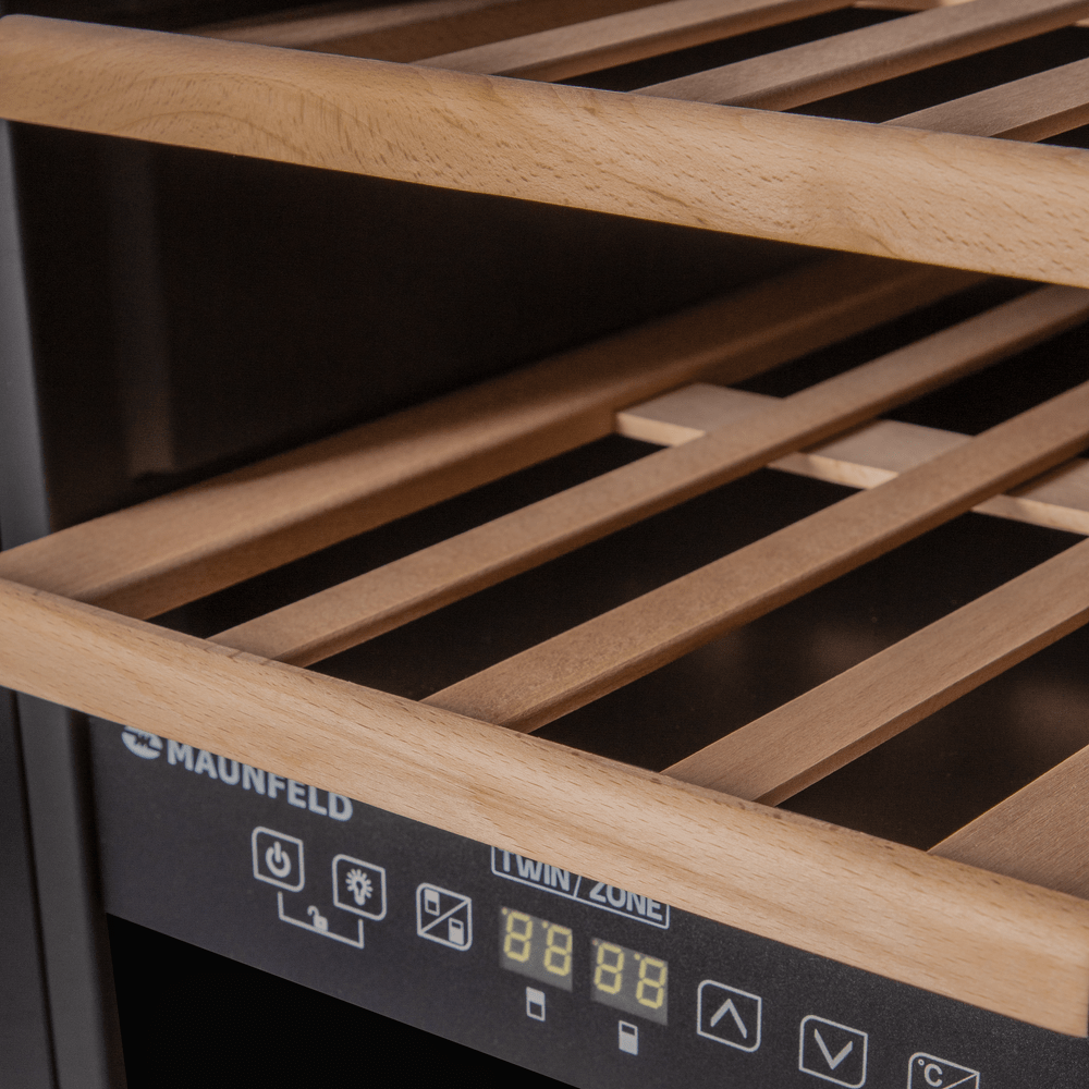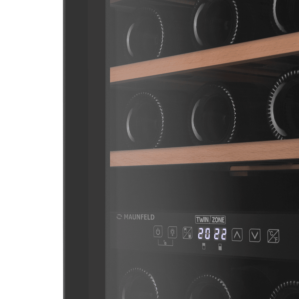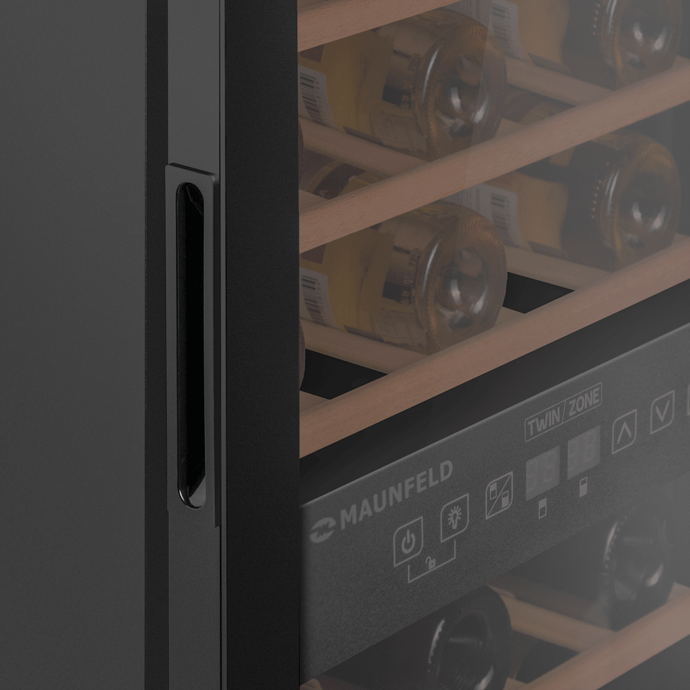 Компактный винный шкаф с двумя температурными зонами для хранения различных сортов вин. Электронное управление, LED-подсветка, прочные полки из бука, перенавешиваемая дверца с защитой от ультрафиолета.