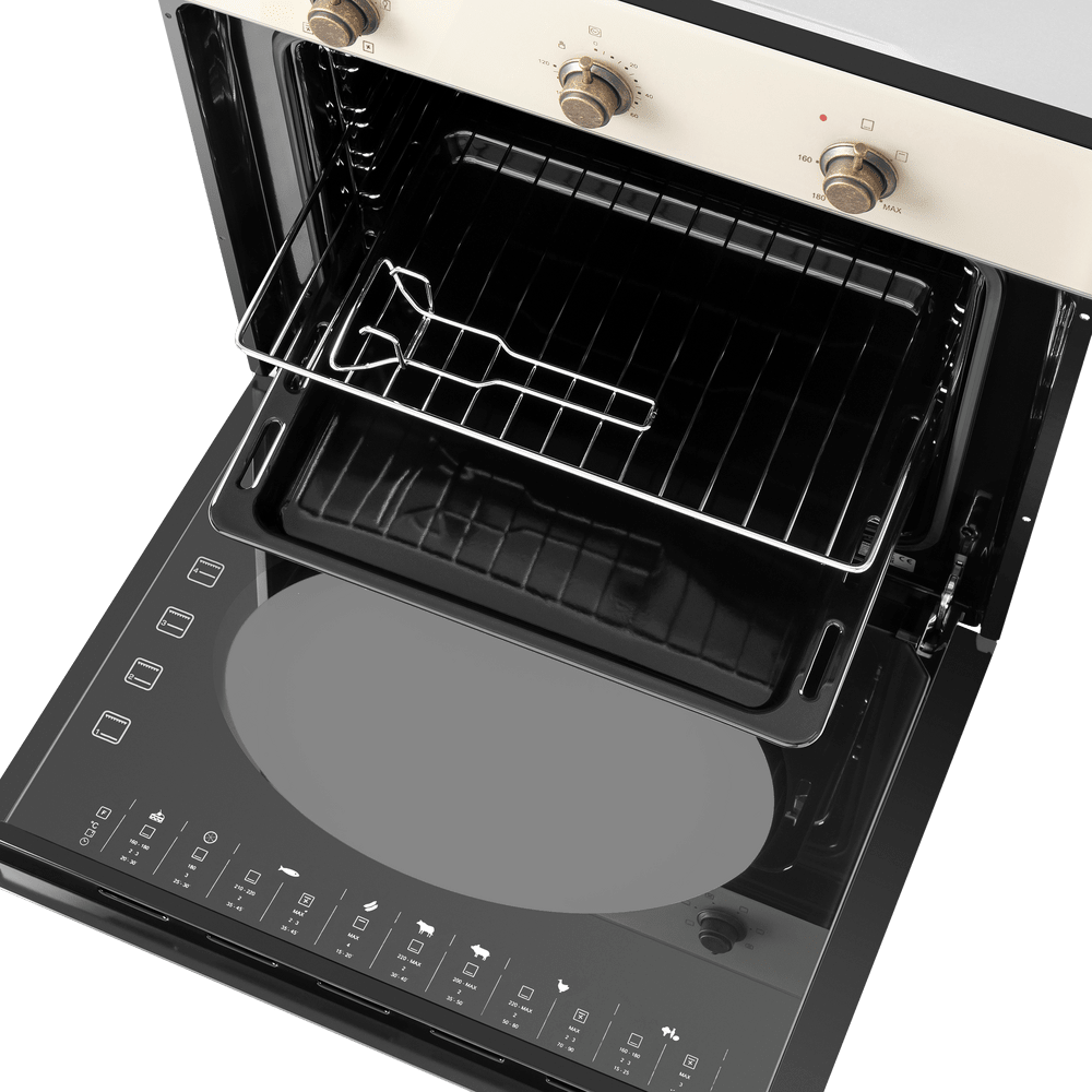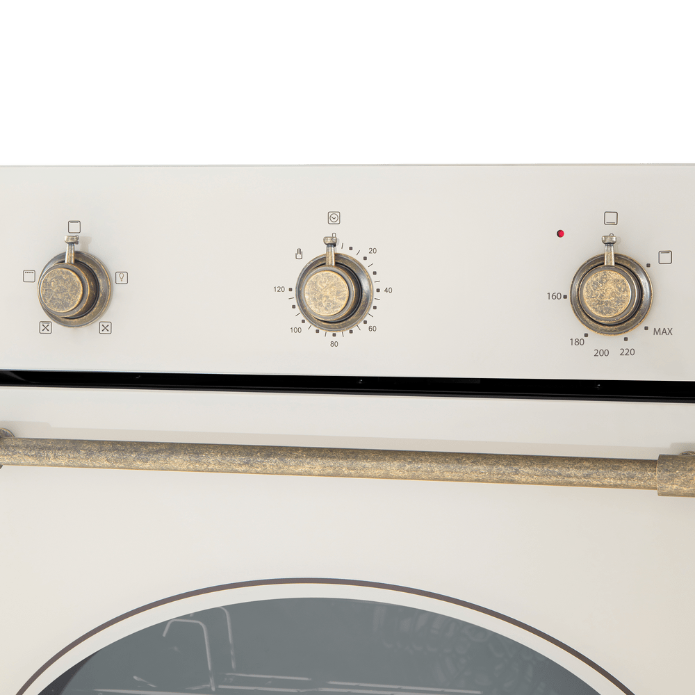 Духовой шкаф MAUNFELD EOGC604RIB.MT Slim — невероятно красивая и практичная модель. Стильный ретро-дизайн сочетается с нежным цветом слоновой кости, который подчеркивает бронзовая фурнитура.
