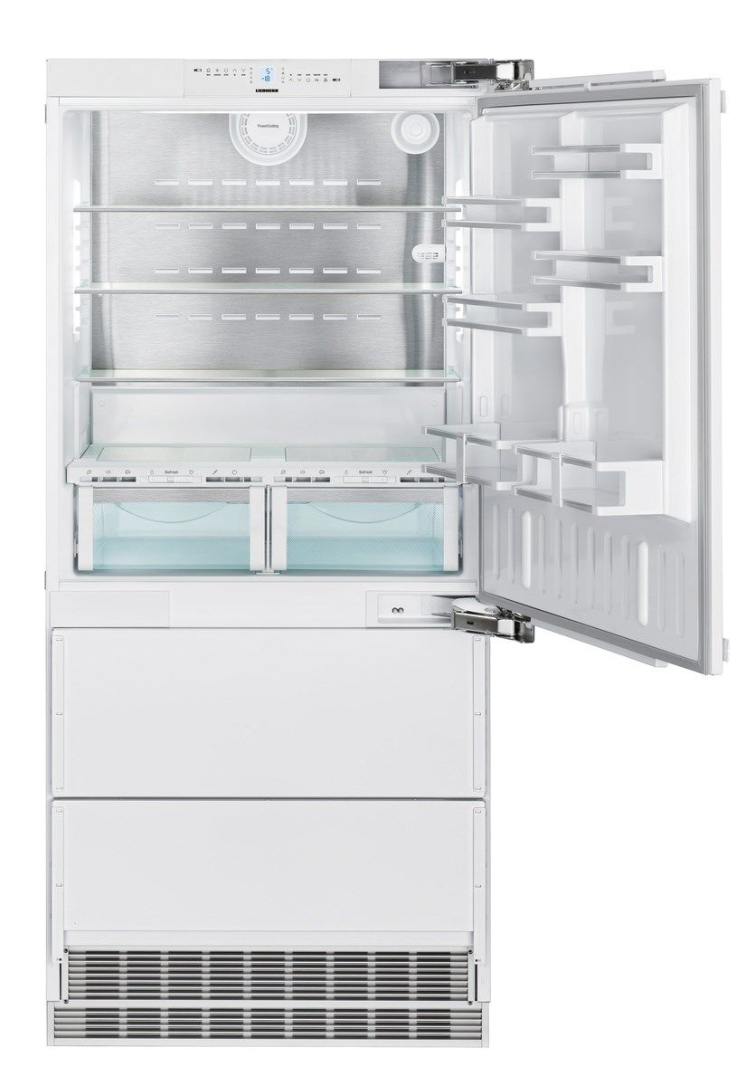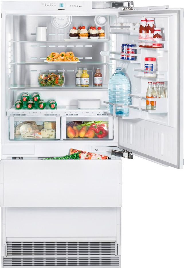 Встраиваемый двухкамерный холодильник Liebherr ECBN 6156 относится к А+ классу энергопотребления и позволяет сократить траты на электроэнергию на 10 процентов по сравнению с аналогами А класса. Имеет современное сенсорное управление, вся информация по работе прибора отображается на жидкокристаллическом экране MagicEye. Дверной упор есть и справа и лева, что позволит расположить дверцу с нужной вам стороны. Монтаж осуществляется с помощью жесткого крепления более надежного и долговечного. В холодильной камере расположены 4 полки из закалённого стекла, три из которых регулируются по высоте и позволят использовать полезное пространство по максимуму. Система выдвижных ящиков имеет частично телескопические направляющие, которые без труда выдвигают их даже при максимальной загрузке. За качественное хранение скоропортящихся продуктов отвечает зона свежести BioFresh. Полезный объем, которой 69 л разделен на два отдела DrySafe и HydroSafe с разной температурой и влажностью.