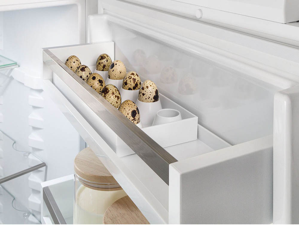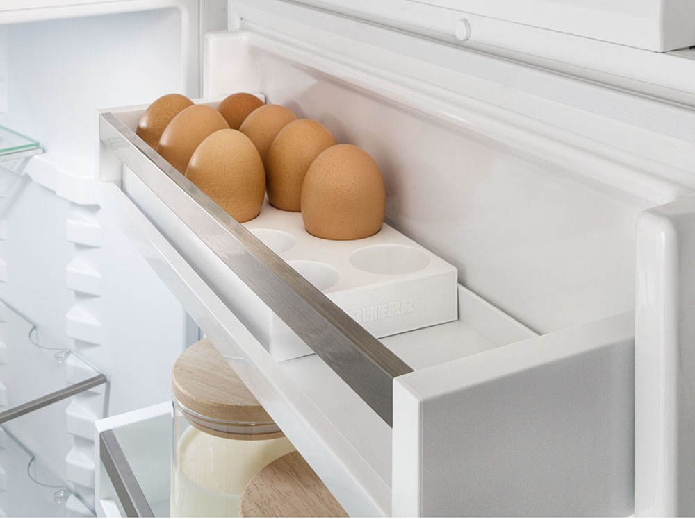 Встраиваемый холодильник Либхер ICNf 5103 мигает и издаёт звуковой сигнал при неполадках в системе, открытой дверце, отключении электроэнергии, повышении температуры. Чтобы дети случайно не перепрограммировали прибор в данной модели существует «защита от детей».