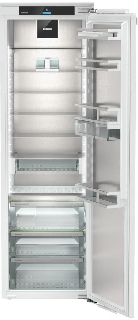 Модель снабжена тремя ящиками внизу камеры суммарным объемом 98.4 л для хранения овощей и фруктов и полкой для хранения напитков. Дверь, оборудованная доводчиком, изготовлена из металла и пластика, с жестким креплением при монтаже фасада, оснащена отверстием для вентиляции. Доступно перенавешивание на правую или левую сторону. На двери с внутренней стороны размещены четыре пластиковые полки для хранения бутылок, консервации и яиц.