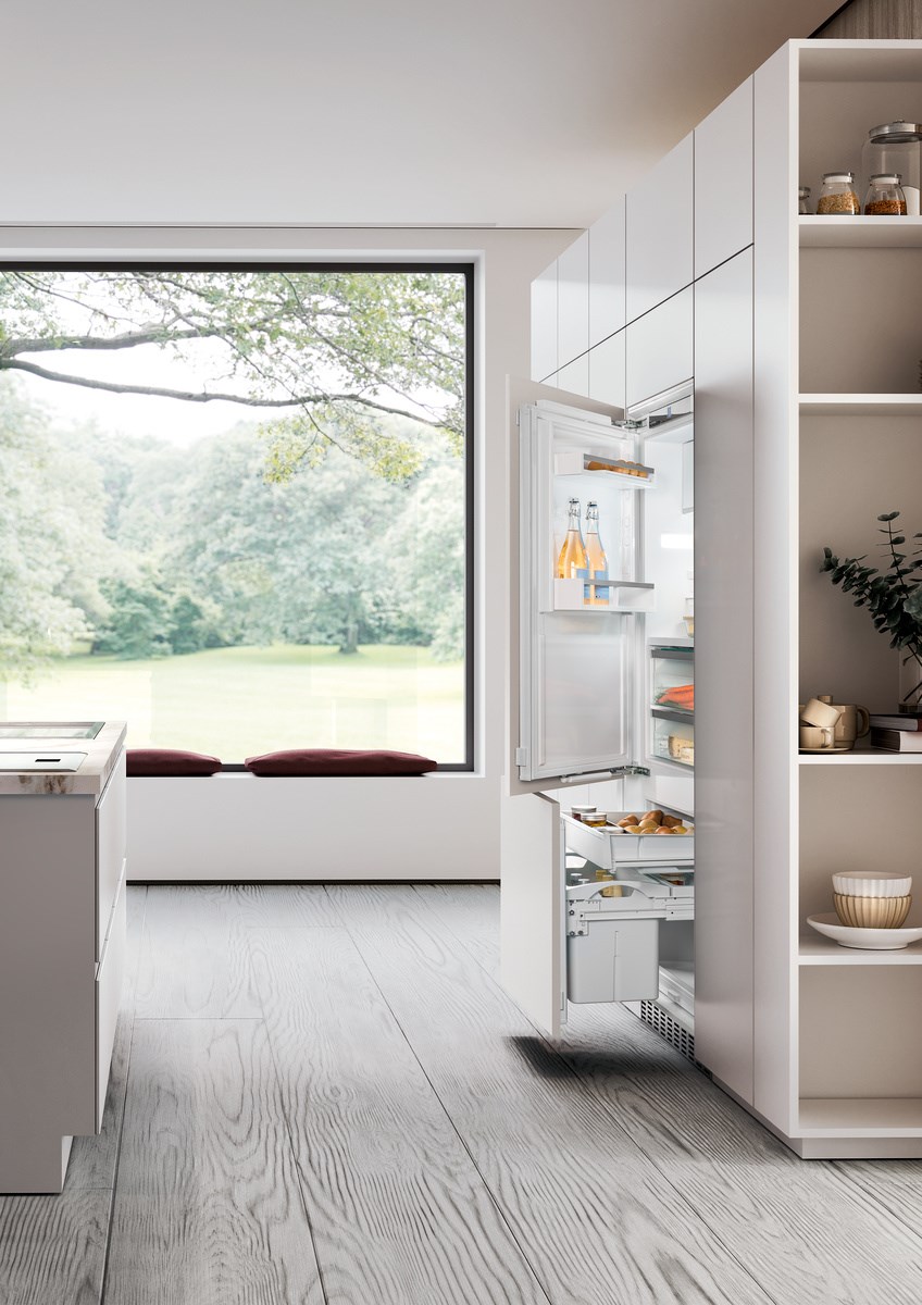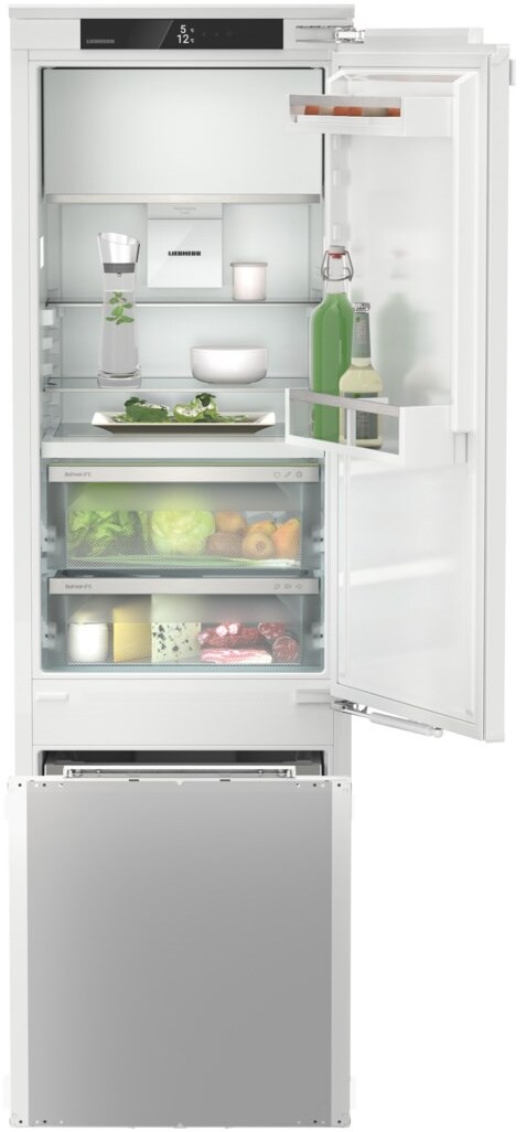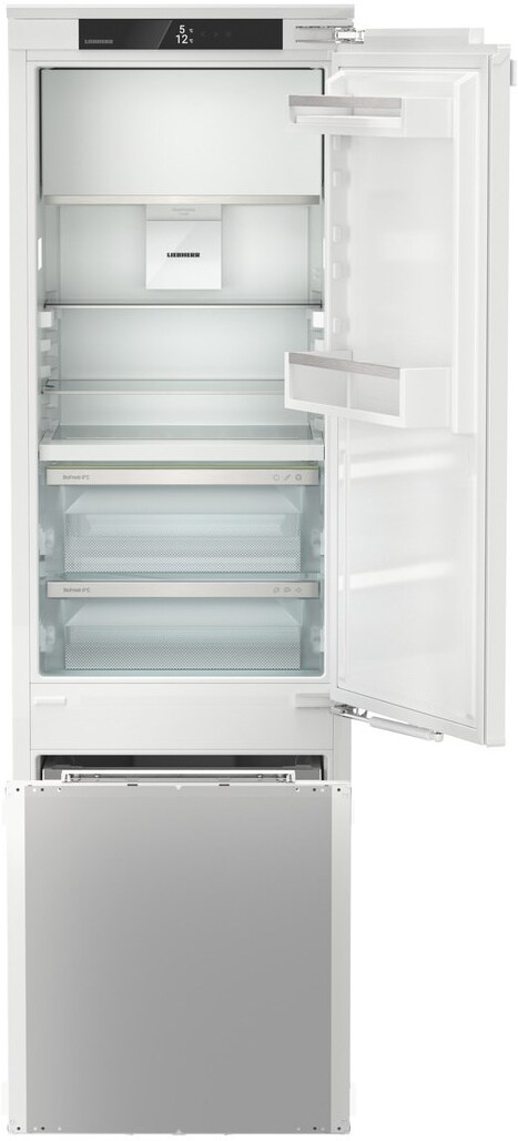 Встраиваемый холодильник Либхер IRCBf 5121 обладает множеством особенностей, среди которых стоит отметить эргономичное внутреннее пространство и удобную организацию. Внутри холодильной камеры вы найдете большое количество полок и ящиков — их можно регулировать по высоте и размещать так, как подходит именно вам. Как и у других моделей из этой линейки, здесь есть отделение BioFresh — зона свежести, где температура всегда близка к 0°C, а влажность оптимальна для увеличения срока годности пищи. Удобные выдвижные контейнеры на телескопических направляющих облегчают доступ к продуктам при полной загрузке. Морозильная камера имеет компактные размеры, но за счет эргономичных ящиков и полок является достаточно объемной. Дверь морозилки открывается не в сторону, а выдвигается полностью, что делает ее использование удобным и комфортным.