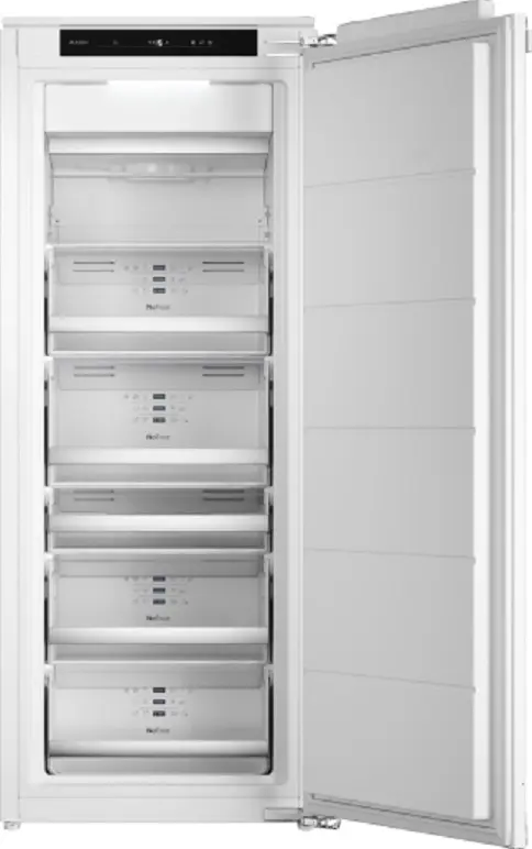 Встраиваемый морозильник Asko FN31442EI сочетает стиль и эффективность. Уровень шума составляет всего 38 дБ, а годовой расход электроэнергии — 171.46 кВт/ч (класс энергопотребления D). Дверь с системой крепления door on door дополнена звуковыми и световыми индикаторами. Минималистичный дизайн без ручки и оптимальный функционал делают этот морозильник идеальным выбором для современной кухни.