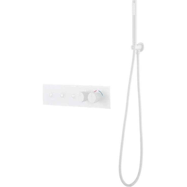 Что включено:✅ внутренняя часть✅ душевая лейка✅ душевой шланг✅ переключатель потоков✅ шланговое подключение с держателем для душа