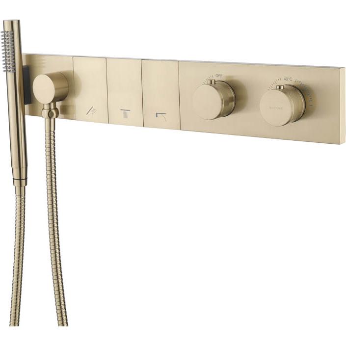 Встраиваемый смеситель для душа и ванны Boheme ZODIAC TERMO 133-SYS-MG с ручным душем, MAT GOLD