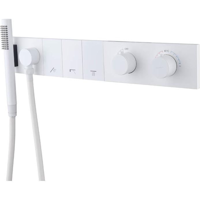 - Термостат автоматически поддерживает заданную температуру воды, защищая от перепадов и ожогов / вода подается при нажатии на кнопку