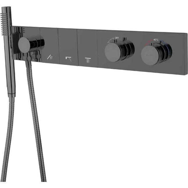 Что включено:✅ внутренняя часть✅ душевая лейка✅ душевой шланг✅ переключатель потоков✅ шланговое подключение с держателем для душа