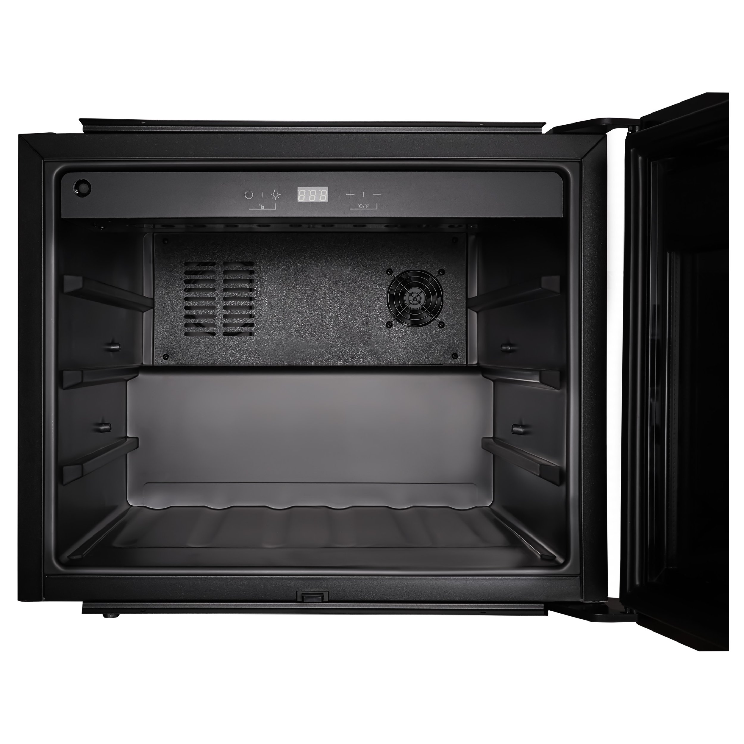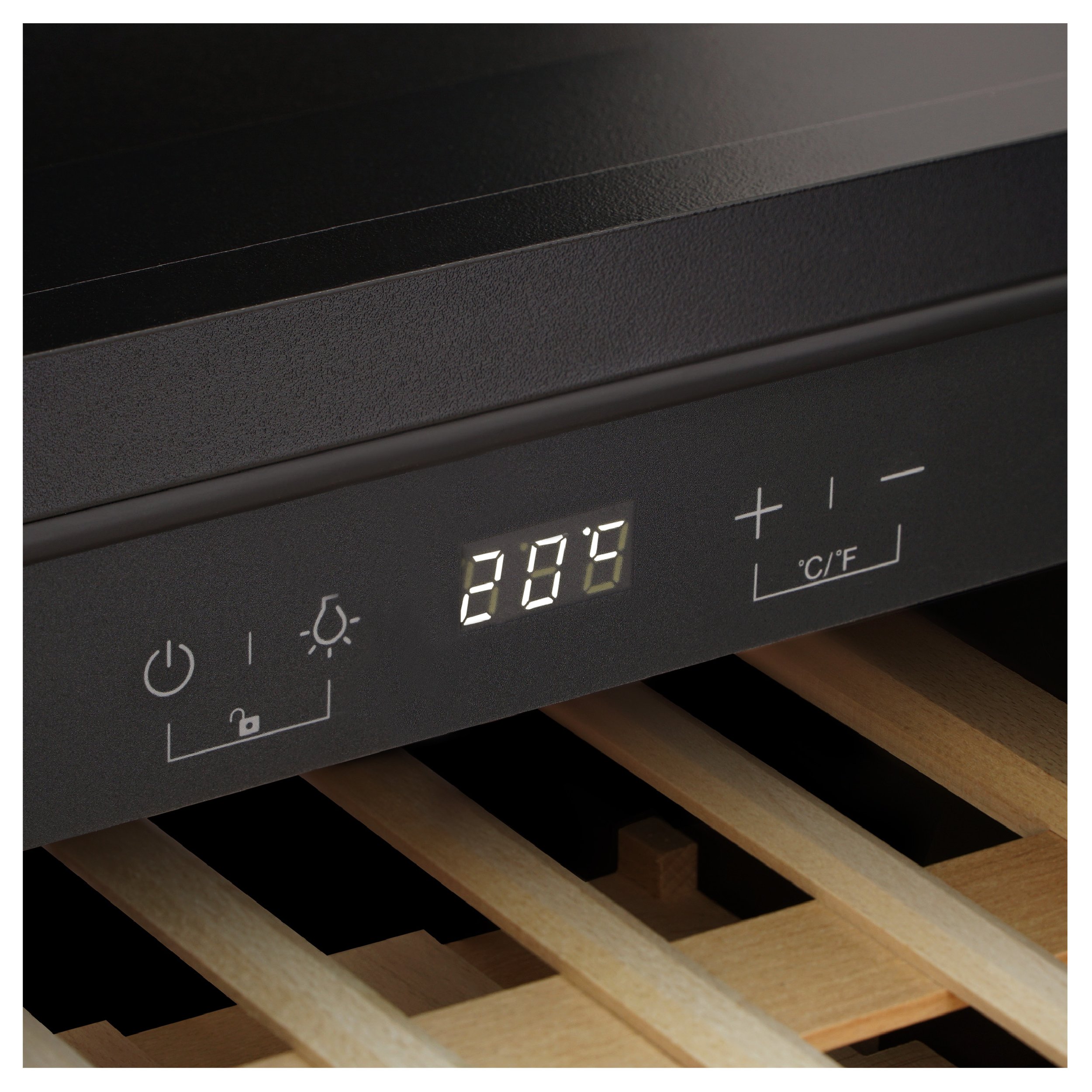 Первый KFW 501 SL GN Встраиваемый винный шкаф KFW 501 SL GN высотой 45 см имеет полезный объем 62 литра и обладает максимальной вместимостью до 28 бутылок. Дверца прибора выполнена из черного стекла и оснащена сенсорной кнопкой — для удобного открывания легким касанием и быстрого доступа к любимым напиткам. Гладкая лаконичная поверхность без выступающих элементов гармонично впишется в любой кухонный интерьер, сохраняя сдержанную минималистичность внешнего облика. Тонированное стекло дверцы защищает напитки от ультрафиолетового излучения, опасного для вина, что способствует сохранению вкуса и ароматов в их первоначальном виде, как задумывали виноделы. Внутреннее сенсорное управление позволяет легко настраивать и контролировать параметры работы прибора. Диапазон температур от 5 до 20 градусов обеспечивает оптимальные условия для хранения любых напитков: красных и белых вин, требующих разной температуры подачи. Вентилятор равномерно распределяет холодный воздух, ускоряя охлаждение вина до нужной температуры. Две деревянные полки из бука – дань уважения старинным традициям европейских погребов, которые одновременно привносят элемент аутентичного дизайна в современный интерьер кухни – поглощают избытки влаги, снижают вибрации, которые пагубно влияют на качество вина и придают прибору элегантный вид. Мягкое внутреннее освещение равномерно освещает пространство камеры, позволяя легко найти нужную бутылку. Сенсорное открывание дверцы Идеальные условия хранения Вентилятор для распределения холода Деревянные полки – историческое наследие Современный компрессор LED освещение