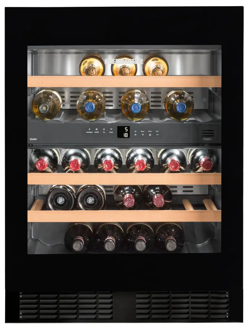 Встраиваемый винный шкаф Либхер UWTgb 1682 рассчитан на 34 стандартные бутылки. В нем имеются две температурные зоны. Вы можете хранить внутри красное и белое вино, настроив для каждой группы напитков свои параметры. Дверцу легко перевесить на другую сторону. Устройство можно расположить в любом удобном месте. Створка оснащена доводчиком и легко закрывается. Ножки регулируются по высоте. Изделие устойчиво располагается на разных напольных покрытиях. В рабочей камере используется циркуляционное охлаждение. Воздух постоянно перемещается внутри. В результате все бутылки охлаждаются равномерно.