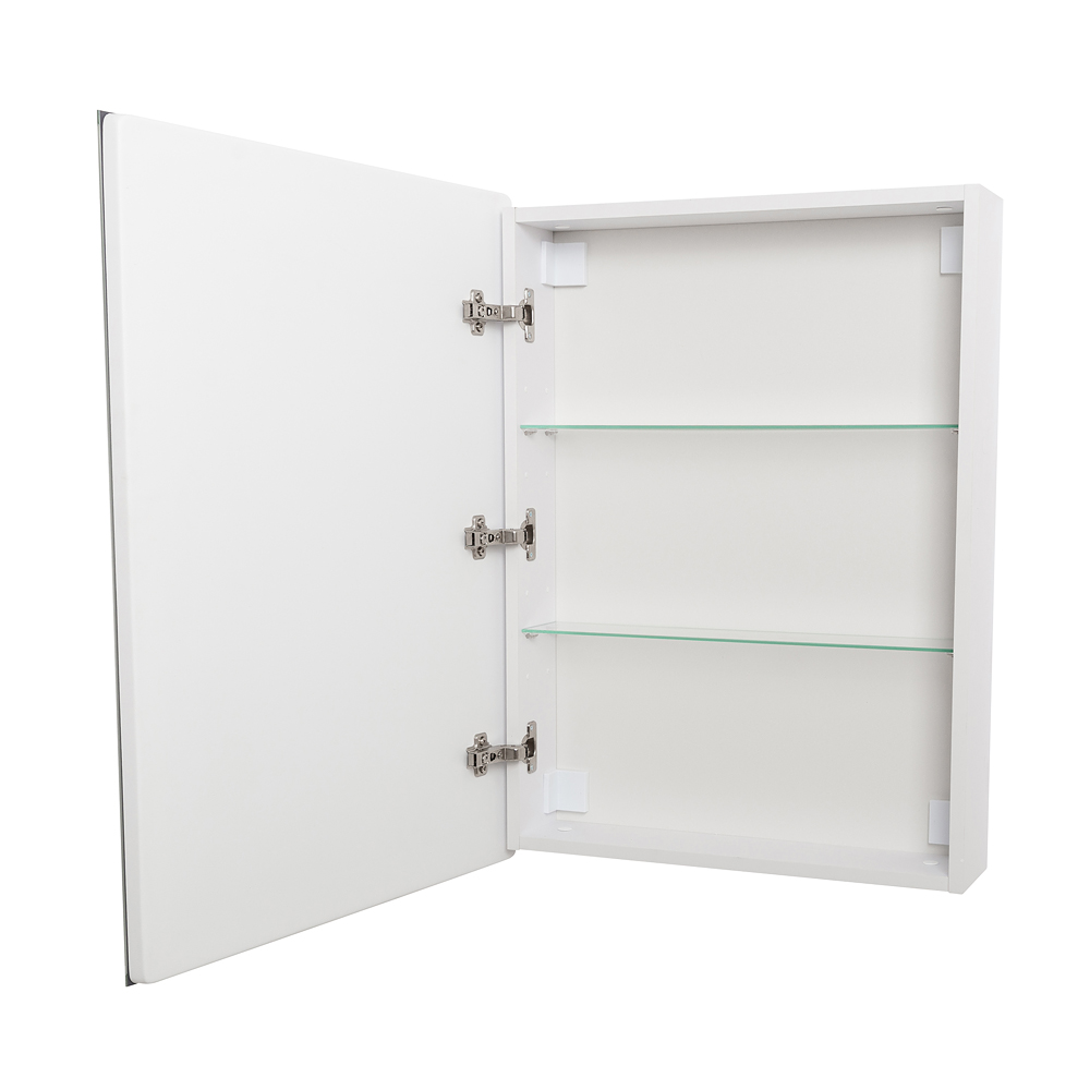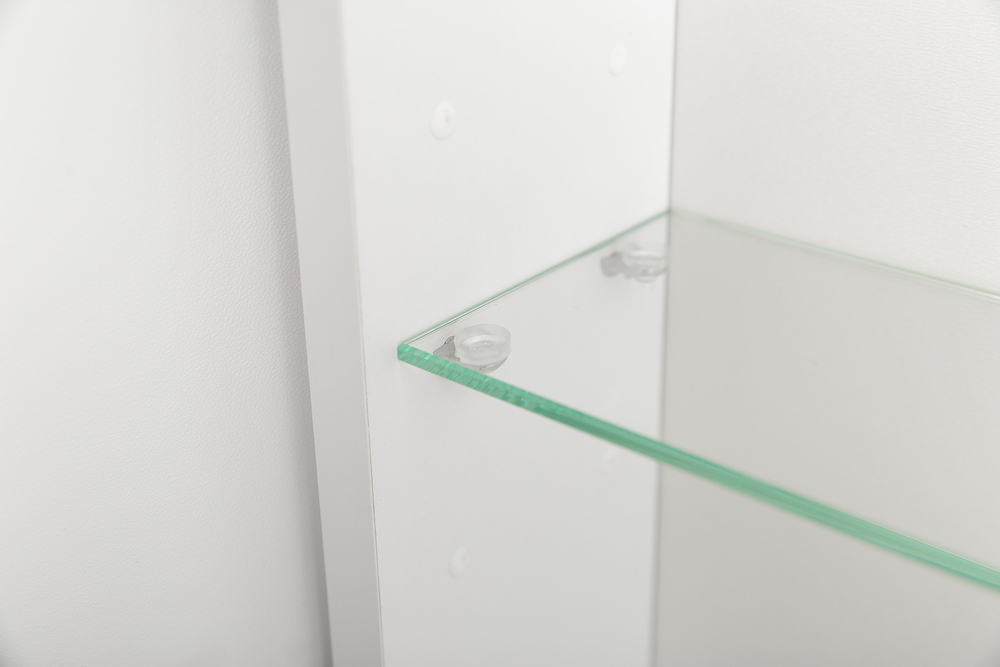 Зеркальный шкаф оснащен встроенной подсветкой по периметру зеркального полотна и сенсорным выключателем.