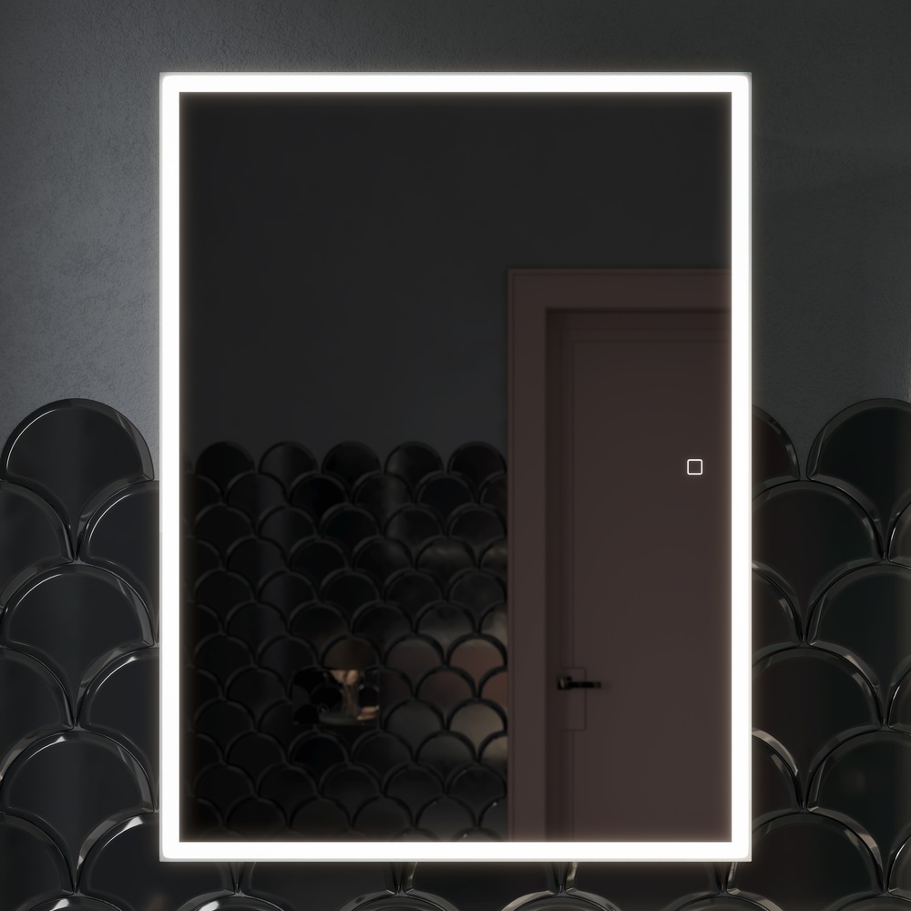 Зеркальный шкаф для ванной комнаты SANCOS Cube 600х140х800, LED подсветка, универсальные крепления петель, сенсорный включатель, 2 полки стекло, арт. CU600