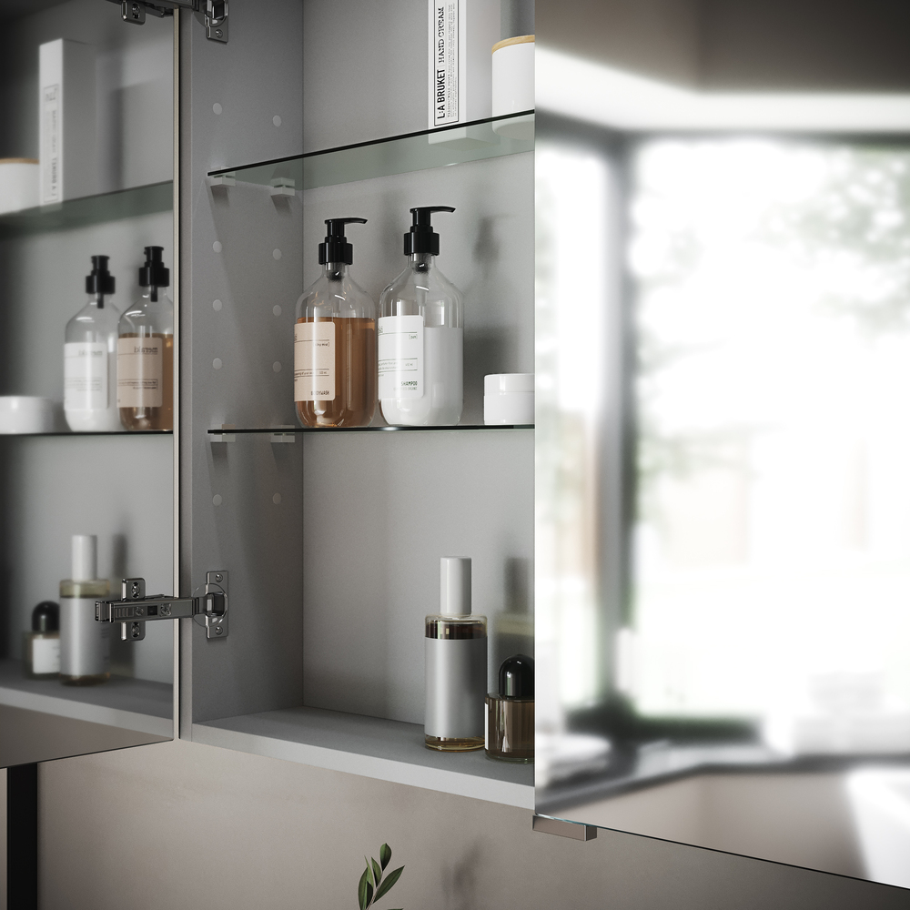 Зеркальный шкаф для ванной комнаты SANCOS Hilton 900x148х740 мм, фасады выполнены из безопасного 2-х стороннего зеркального полотна по технологии триплекс, LED светильник, внутренняя розетка с выключателем, арт. Z900