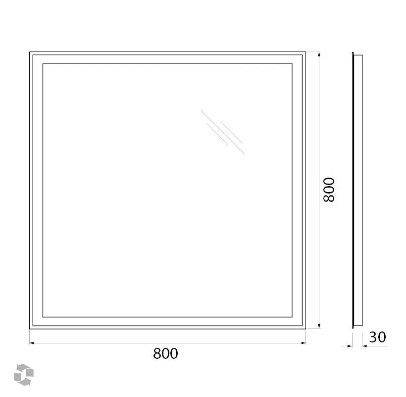 Зеркало со встроенной LED подсветкой, механическая кнопка.