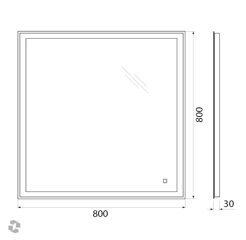 Зеркало со встроенной LED подсветкой, сенсорная кнопка.