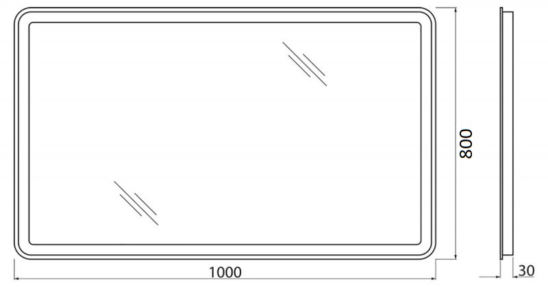 Зеркало со встроенной LED подсветкой, механическая кнопка.