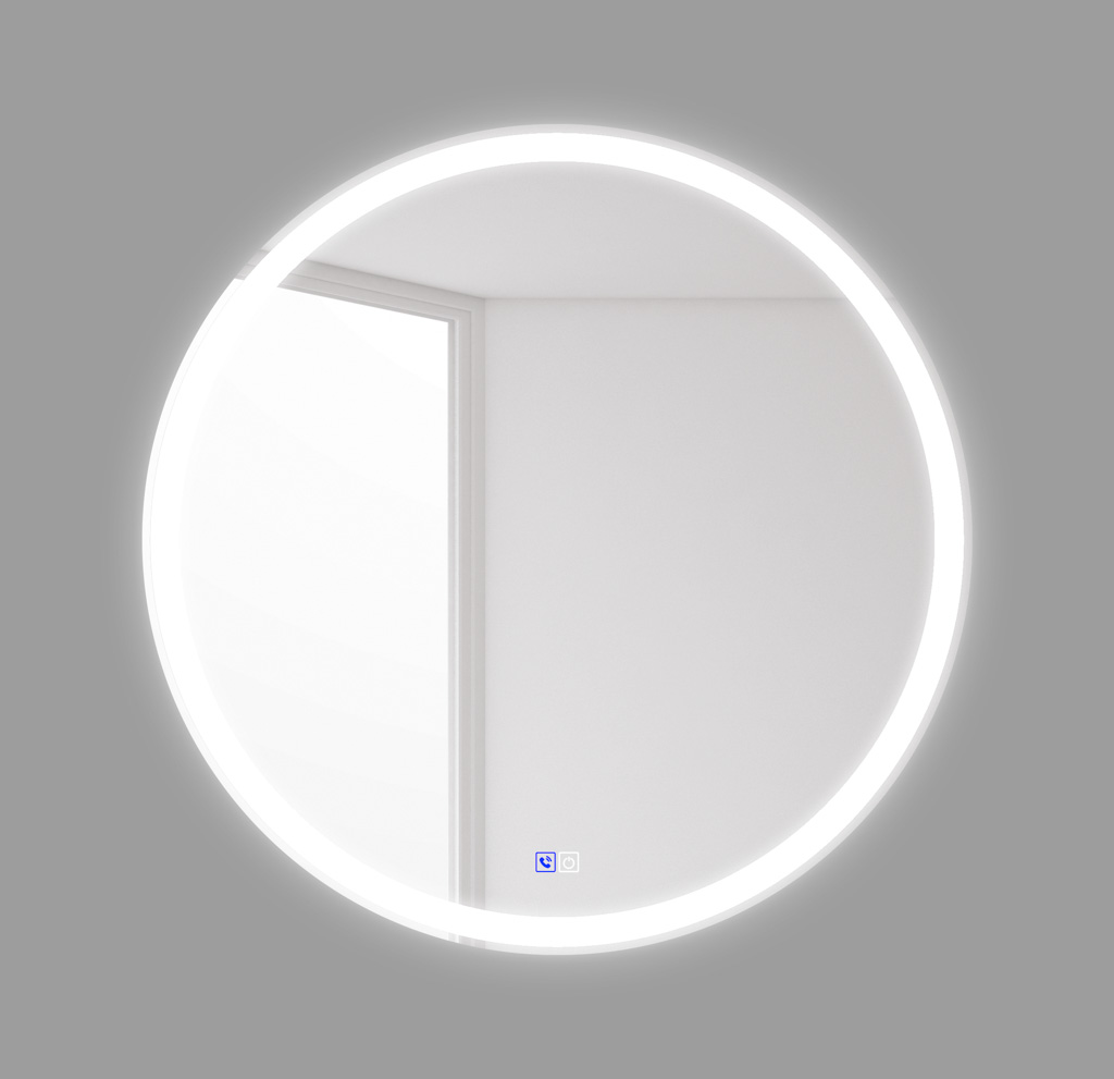 Зеркало со встроенной LED подсветкой, bluetooth-модулем, микрофоном и динамиками, сенсорные кнопки.