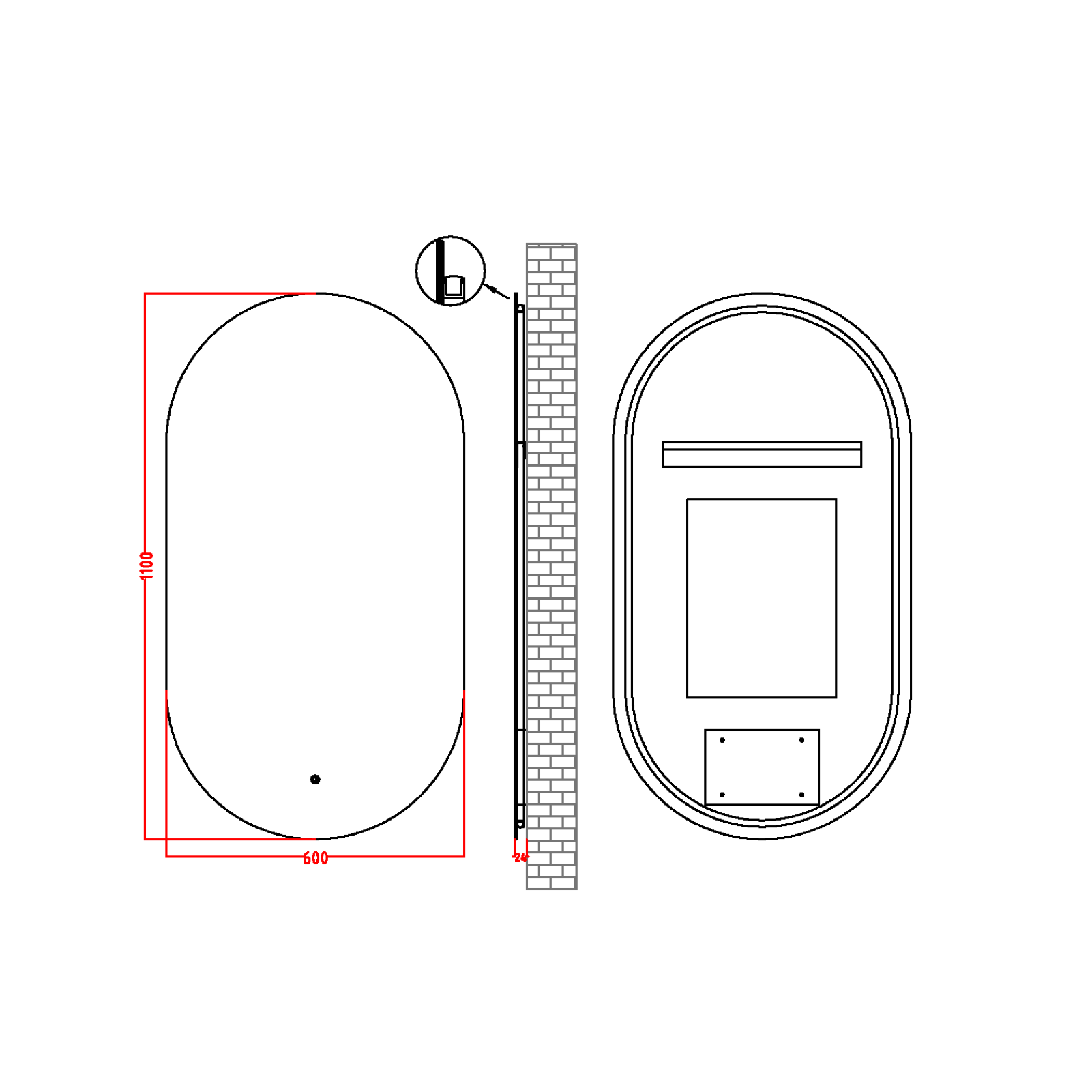 - Дополнительное оснащение зеркала: регулируемая подсветка / подвесы