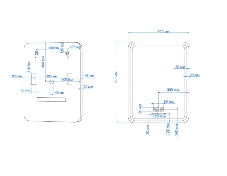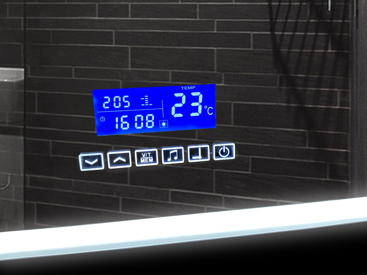 Зеркало со светодиодной LED подсветкой с диммером и многофункциональной панелью.